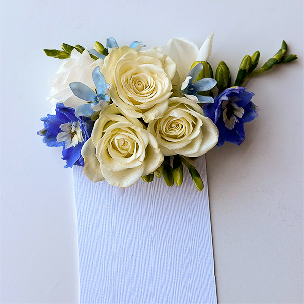A stylish alternative to a boutonniere, our floral pocket squares are designed to slip into a jacket pocket for a modern, polished look. Each one features a small arrangement of blooms and greenery for a fresh, botanical statement.